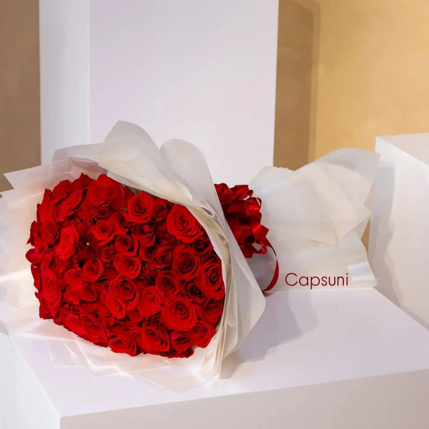 Impresionante ramo buchón de 100 rosas frescas, con un diseño lleno de elegancia y color. Perfecto para sorprender en cualquier ocasión especial, este ramo transmite belleza, frescura y un toque de sofisticación.